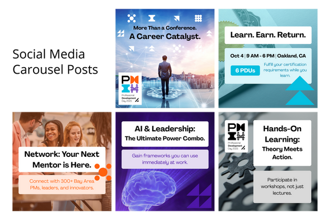 As a Graphic Designer for the Project Management Institute, San Francisco Bay Area Chapter, I drive event registration by creating compelling visuals for social media channels and email campaigns. My designs attract local attendees by highlighting renowned speakers, promoting professional development benefits, and representing the Bay Area's diverse community. I ensure all visuals adhere to the global organization's brand guidelines, directly contributing to the chapter's mission of advancing the project management profession.